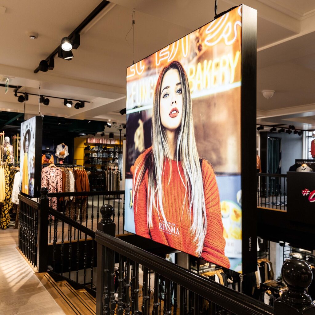 Smartframes kan monteres på væg, hænges fra loft eller stå frit på gulv med fødder, og er ideel eksponering af budskaber i bl.a. forretninger, på messer og i kontorlandskaber.