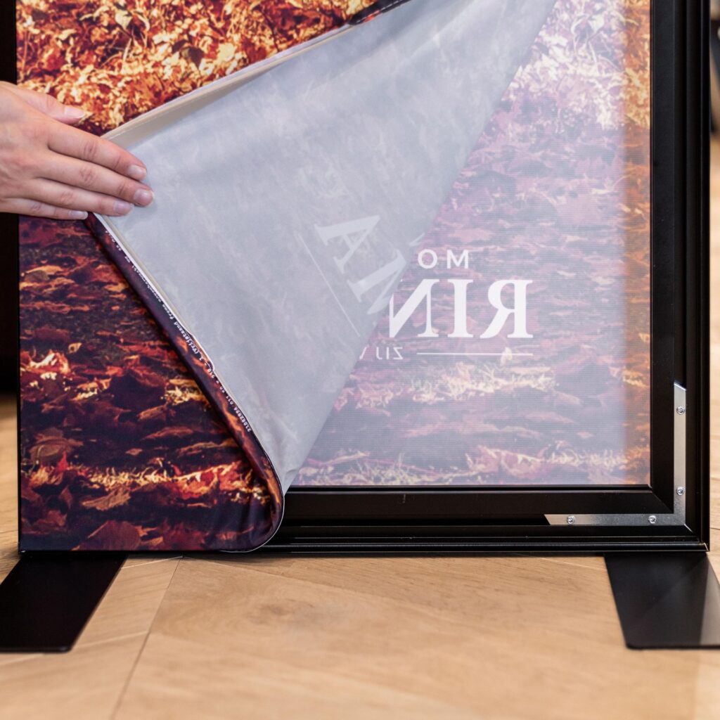 En smartframe er et dekorativt, fleksibelt og smart system, der kan anvendes med bannere både