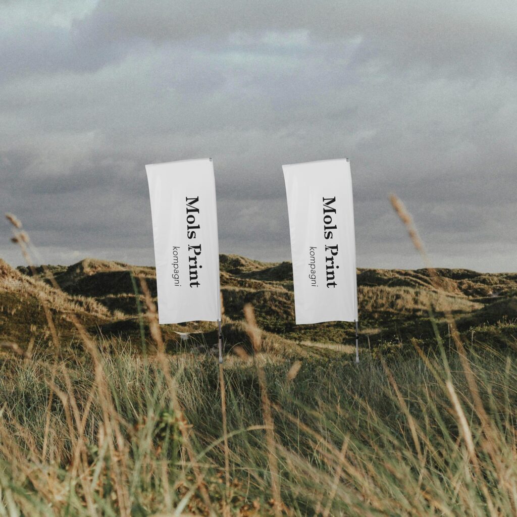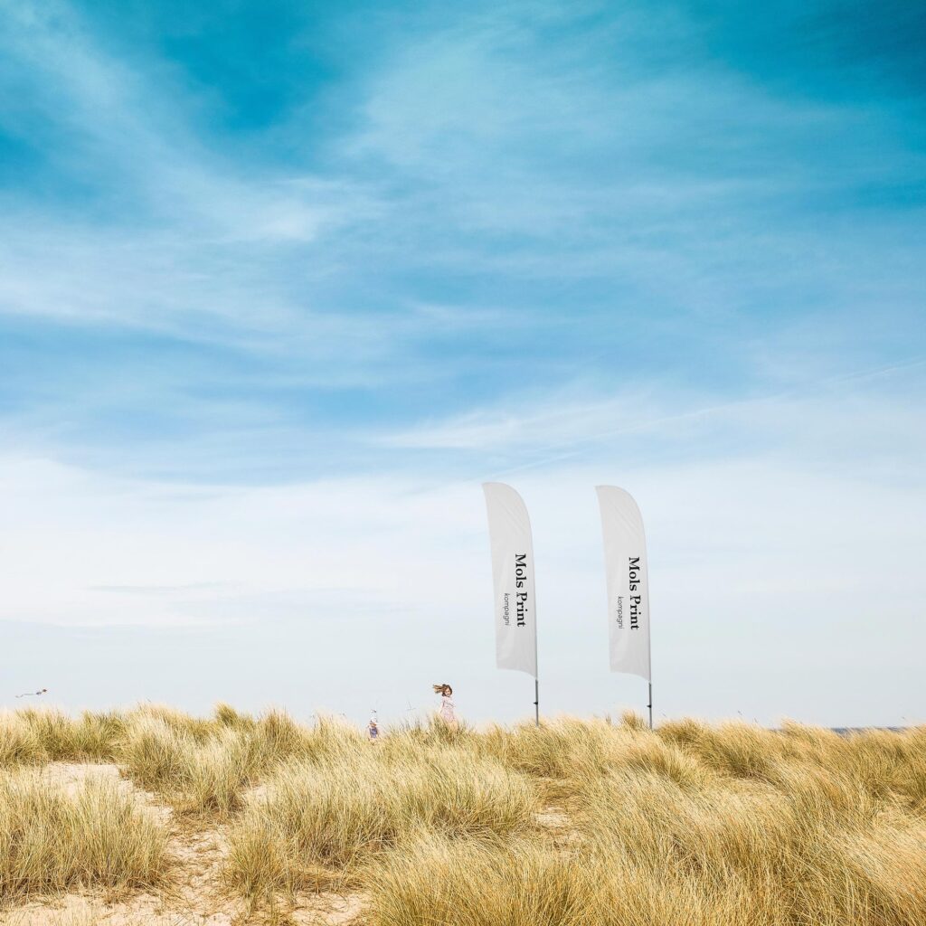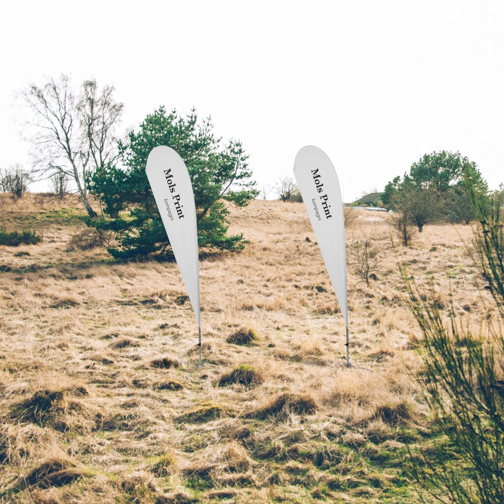 Alle vores beachflag printes på recycled 110 g Dekotex – en ansvarlig og klimavenlig løsning, hvor vi ikke går på kompromis med kvaliteten.